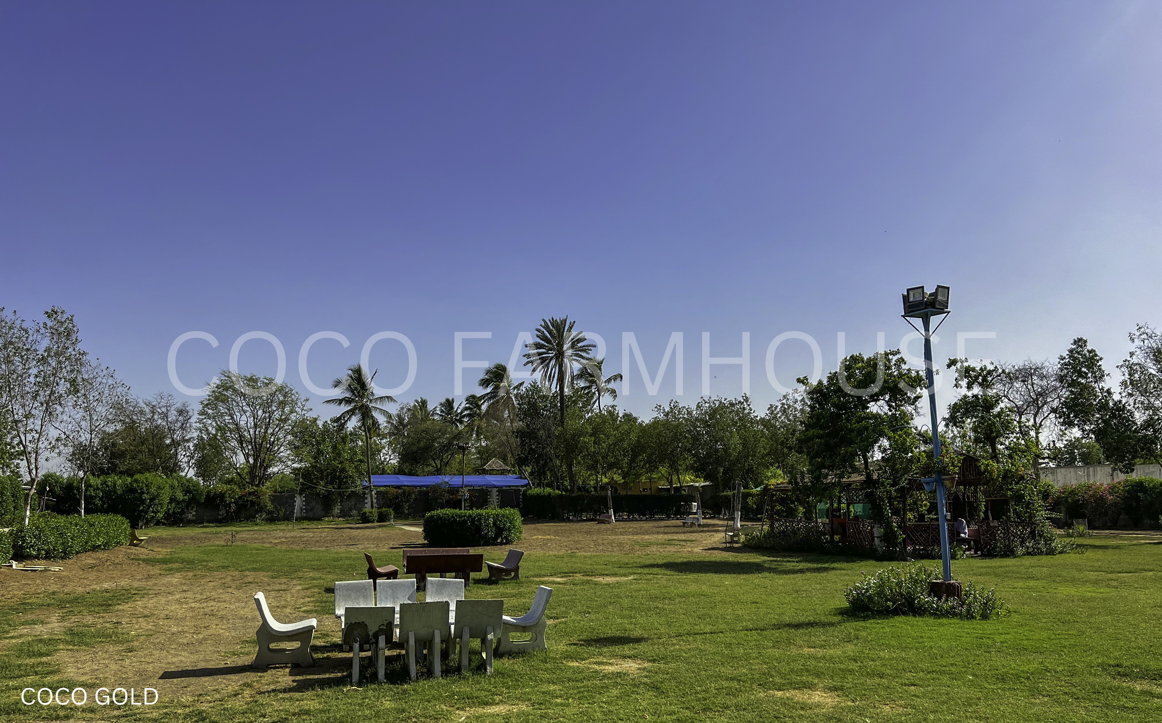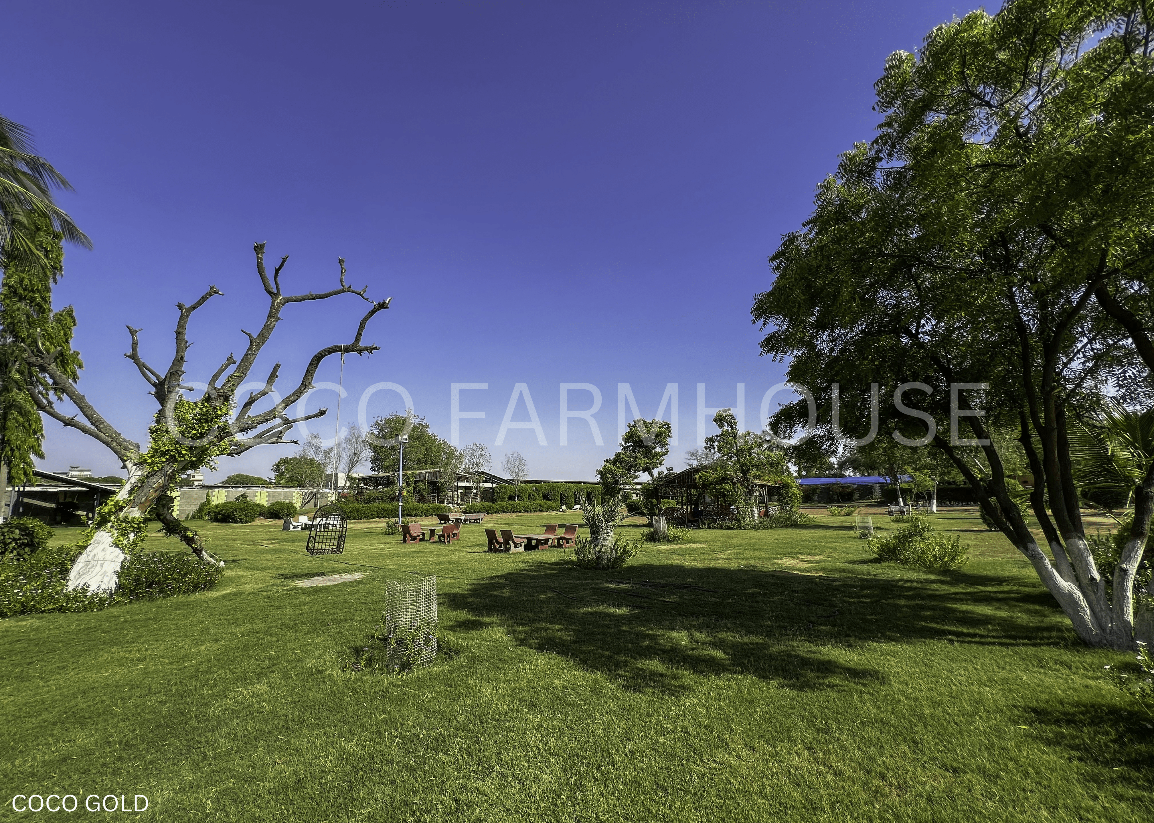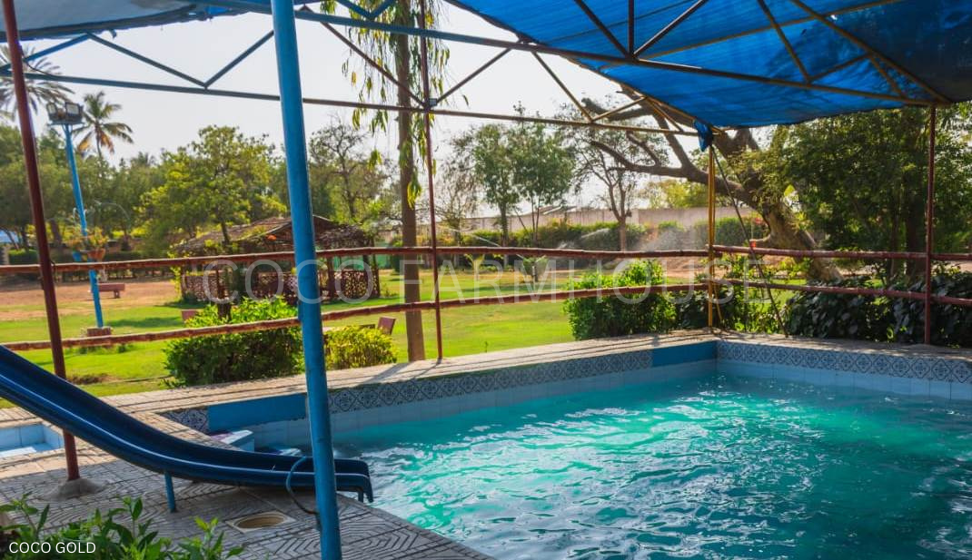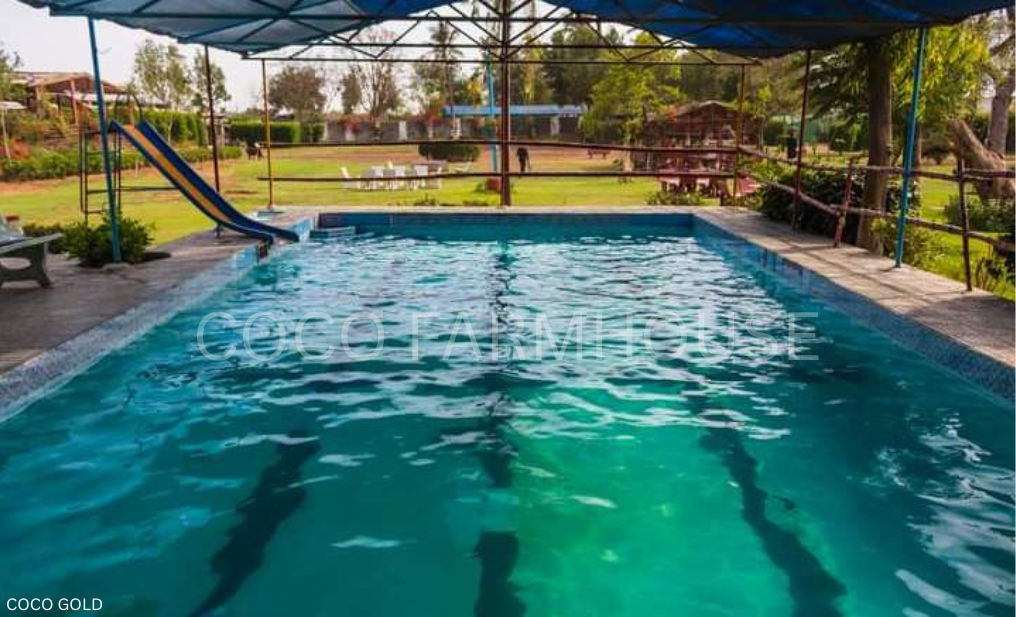 COCO GOLD - The Highest Range of Coco Farmhouses around 2-Acres (9,680 Sq. Yds) about 100-200 persons of Capacity, Lush Green Garden & Cricket Ground with Proper Lightening in Night, Stage & Shady Huts, Swimming Pool, Snooker, Table Tennis Games etc & much more.
